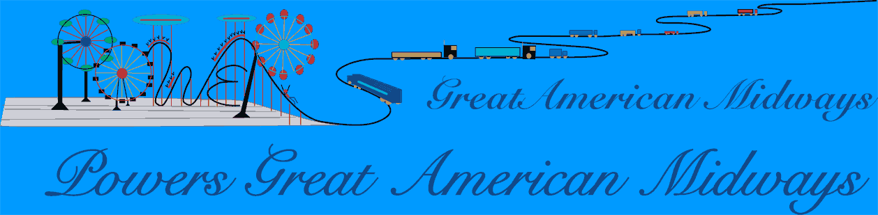 Powers Great American MidwaysContact PGAM / Tickets & Coupons / Booking / Rental Equipment / Employment Oppurtunities / Equipment For SaleAmenities / Ride VIdeos / Route / Rides / Food / Games / Refurbishing / What's New / Links / Testimonials